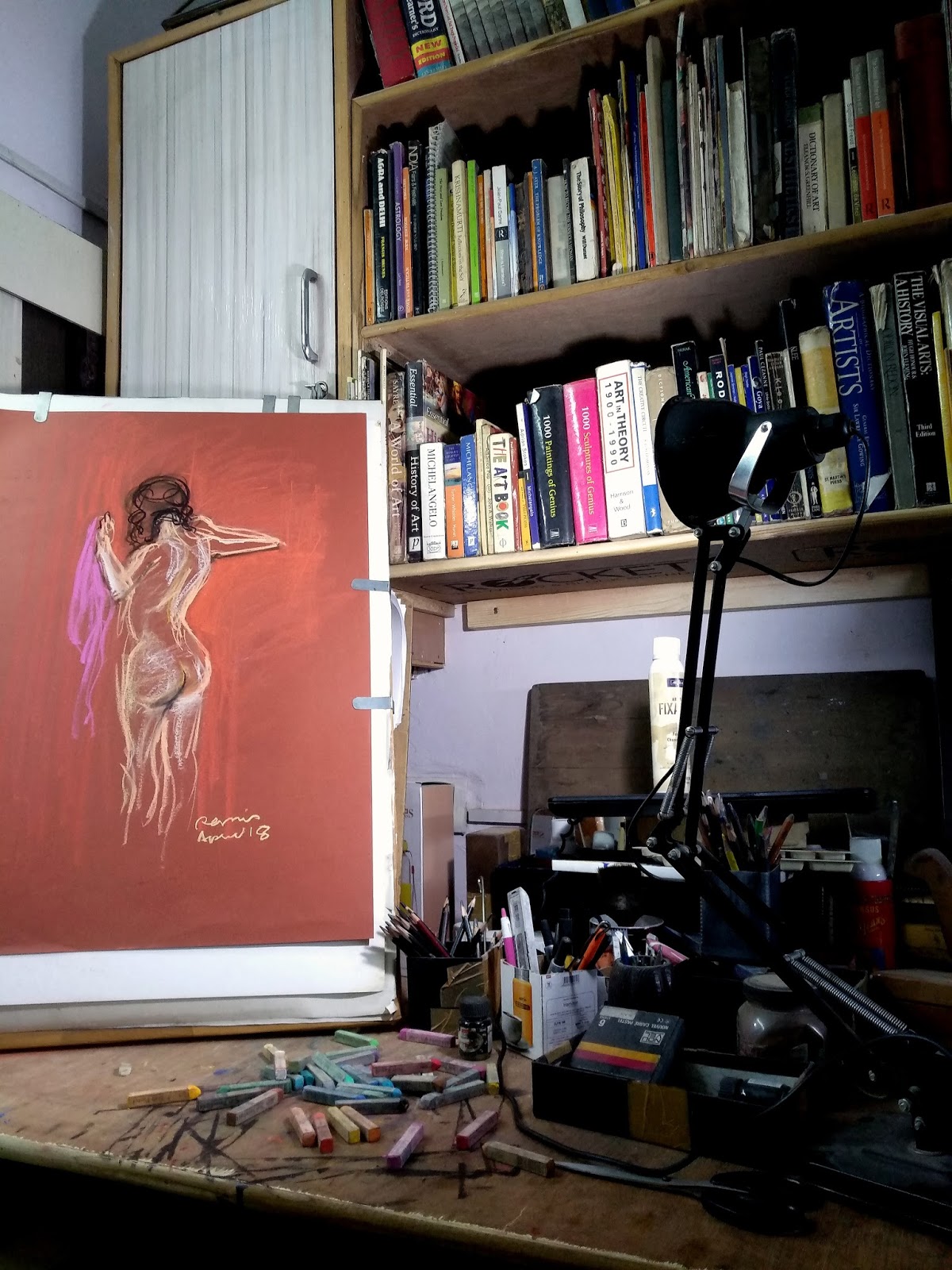 I am a graduate in applied art from the college of arts and crafts at Lucknow( 1992) My evolution as an artist has been intertwined with my growth as a human. Drawing the slim, athletic frames of the dispossessed in a variety of daily struggles for meager wages has been my childhood passion. These drawings help me relieve a little bit of my anguish.